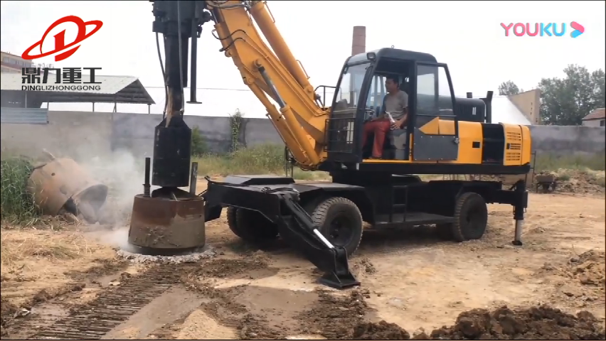 轮式旋挖钻机为国外客户展示钻混凝土